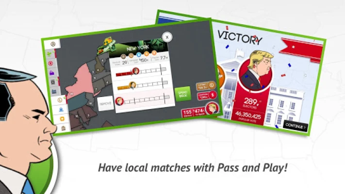 Forbered deg på å utfordre politiske motstandere i avgjørende delstater, vinne over tvilende velgere og mobilisere støtte fra mektige interessegrupper. Denne ferden mot Det hvite hus er en nervepirrende kappestrid hvor hvert trekk kan endre spillets gang. Akkumuler valgmannsstemme etter valgmannsstemme, bygg momentum, og se din vei til presidentskapet materialisere seg. Med "270 | Two Seventy - Win the US Election" er det du som har makten til å forme nasjonens fremtid og stige til toppen som den neste presidenten i USA.