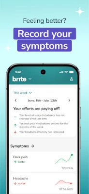 Ta styringen over din personlige helsehistorie med brite Health, en banebrytende app designet for å gi deg verktøyene du trenger. Forvandle daglige observasjoner om din helse til verdifulle, handlingsrettede data. Enten du håndterer en kronisk tilstand eller simpelthen streber etter en bedre livskvalitet, hjelper brite Health deg med å kartlegge symptomer, administrere medisiner og få tilgang til pålitelig helsekunnskap. Dette er din sikre, digitale helsejournal, rett ved fingertuppene, som gir deg mulighet til å optimere ditt velvære hvert skritt på veien.