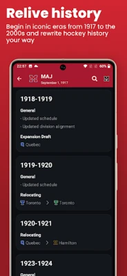 HLM26 tilbyr en enestående reise gjennom hockeyhistorien, hvor du kan starte din karriere helt tilbake i 1917. Følg utviklingen av hele ligaen gjennom århundrer, spor legendariske draftklasser og se lag stige og falle. Gi universet ditt et personlig preg ved å tilpasse spillere, lag, trenere og ligaer etter eget ønske, og form fremtiden med utvidelsesdrafts. Best av alt, du kan nyte denne dype og engasjerende opplevelsen hvor som helst, når som helst, takket være offline-spill.
