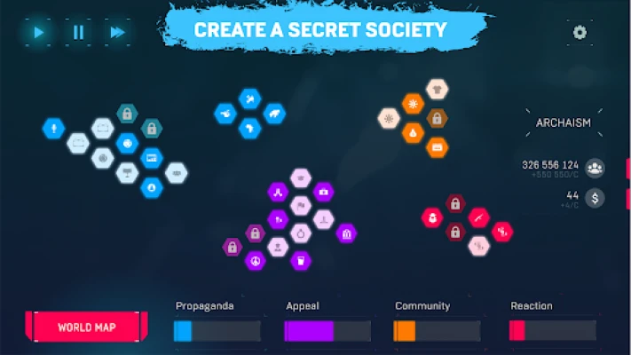 Led en hemmelig organisasjon og underlegg deg hele samfunnet. Bruk propaganda, strategisk politisk handling og omdiriger finansielle strømmer for å oppnå total kontroll. Planlegg nøye for å herske i skyggene.