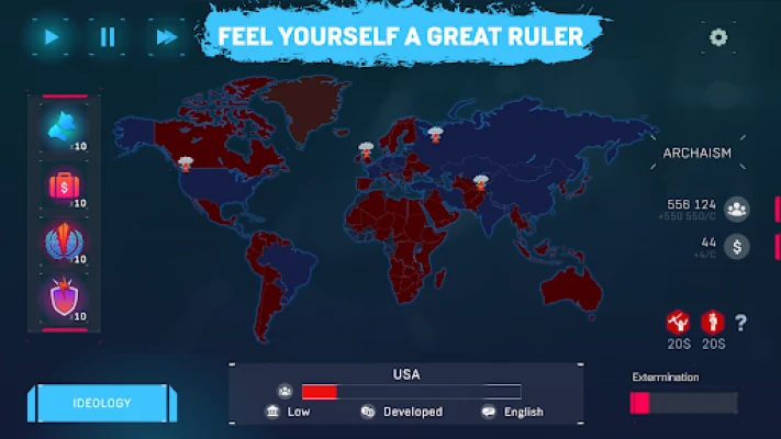 Har du drømt om å forme verdens skjebne, å lede menneskeheten i en helt ny retning? Dykk inn i Ideology Rush, et intrikat strategispill og en realistisk simulering av globale maktkamper. Her er spørsmålet ikke bare om du *kan* erobre verden, men om du klarer det før verdenssamfunnet forener seg i motstand mot din visjon. Forbered deg på en intellektuell utfordring der klokken tikker, og hvert trekk kan endre historiens gang.