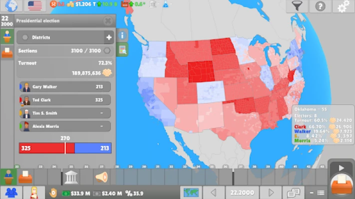 Ditt engasjement strekker seg til plenumssalen, hvor du fremsetter, debatterer og avgjør skjebnen til avgjørende lovforslag. Se hvordan dine beslutninger påvirker landets økonomi, borgernes velferd og selv global stabilitet. Utenfor møtesalen må du navigere i et landskap av allianser og forhandlinger. Smi bånd med innflytelsesrike organisasjoner, forhandle frem lukrative avtaler med andre partier, eller dann mektige koalisjoner for å styrke din posisjon og gjennomføre din agenda.