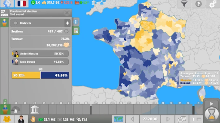 Dykk ned i det intrikate nettet av global politikk, hvor du får muligheten til å utforske en rekke styresett, fra det direkte flertallsvalget til komplekse forholdstallsmodeller som d'Hondt-systemet. Innta rollen som en innflytelsesrik politiker i et parti, og form din egen karrierevei. Vil du kjempe for nasjonens ære, styrke partiets innflytelse, eller snarere prioritere personlig vinning? Hvert valg du tar vil reverberere gjennom maktens korridorer og definere din arv.