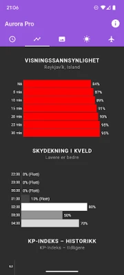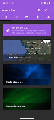 Drømmer du om å oppleve det magiske nordlyset danse på himmelen? Enten du er en erfaren nordlysjeger eller planlegger din første ekspedisjon, er denne applikasjonen din uunnværlige følgesvenn for å maksimere sjansene dine. Vi gir deg sanntidsdata og fremtidsutsikter, slik at du alltid er et skritt foran naturens mest spektakulære lysshow.
