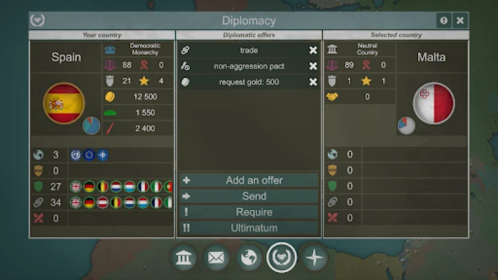 Velkommen til den ultimate arenaen for global dominans, et dypt strategispill som lar deg forme nasjoners skjebne gjennom historiske epoker og fantasifulle scenarier. Her opplever du en verden hvor interne intriger, diplomatisk snedighet og økonomisk overlegenhet er like viktig som militær styrke. Bygg ditt imperium fra grunnen av, naviger i et intrikat nettverk av intern politikk, og møt utfordringer som opprør fra misfornøyde befolkningsgrupper og veksten av mektige organisasjoner.