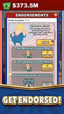 Ditt eventyr i Pocket Politics handler om strategisk kløkt og urokkelig ambisjon. Etabler og automatiser lobbyvirksomheter som genererer en ustoppelig strøm av kontanter, selv når du er offline, slik at din formue vokser eksponentielt. Invester dine opptjente midler smart for å akselerere profittveksten og låse opp nye muligheter. Hver eneste krone du tjener er et skritt nærmere toppen, og hvert valg du tar vil definere din vei mot absolutt makt.