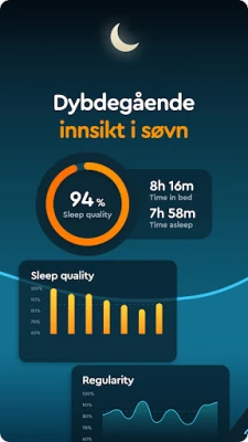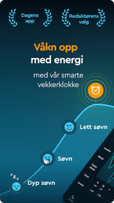 Si farvel til brå oppvåkninger. Sleep Cycle overvåker dine søvnsykluser diskret og vekker deg skånsomt i din letteste søvnfase, slik at du starter dagen rolig og uthvilt. Denne intuitive søvnanalysen krever ingen direkte kontakt; plasser enkelt enheten på nattbordet eller gulvet. Få en dyp forståelse av dine hvilevaner med detaljerte rapporter, trender og en kvalitetsscore. Du kan også loggføre faktorer som koffeininntak eller stress for å observere hvordan de påvirker nattesøvnen, og oppdage sammenhengen mellom din søvn og ditt humør neste dag. Våre ekspertdesignede søvnprogrammer og personlige råd gir deg verktøyene for å utvikle varige og sunne søvnvaner.