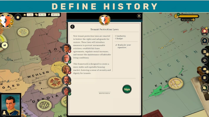 Suzerain tilbyr ulike veier for å utforske disse dyptgående narrative opplevelsene. Du kan spille gjennom hele spillet gratis ved å velge annonsebasert tilgang. For en uavbrutt reise, kan individuelle historiepakker for Sordland og Rizia kjøpes, noe som gir deg full tilgang uten annonser og med ekstra fordeler som bonuspoeng. Fleksible abonnementsplaner, fra en dag til en måned, gir tidsbegrenset, annonsefri tilgang til begge historiepakkene. For de mest dedikerte fansen gir Livstidspasset evig tilgang til alt nåværende og fremtidig innhold i Suzerain-universet, inkludert kommende DLC og ekspansjoner, for den ultimate premium-opplevelsen. Hvilken skjebne vil du smi for dine nasjoner?