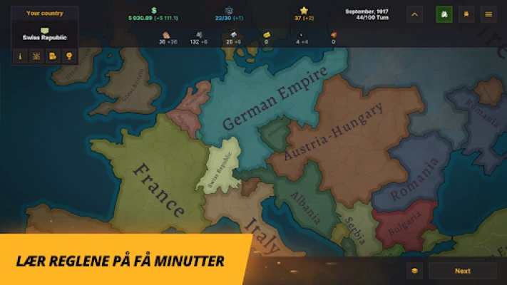Velkommen til Warnament, et mesterverk innen turbasert storslått strategi, skapt i tett samarbeid med et lidenskapelig fellesskap. Dette spillet er designet for å gi deg en perfekt balanse mellom tilgjengelighet, dyp strategisk tenkning og enestående frihet til å tilpasse spillopplevelsen. Enten du drømmer om å gjenskape historiske konflikter eller utforske helt nye, alternative virkeligheter, gir Warnament deg verktøyene til å smi ditt eget globale dynasti. Fra å lede et teokratisk Frankrike i angrep på Berlin, til å styre et kommunistisk Luxembourg mot verdensherredømme – kun fantasien setter grenser.